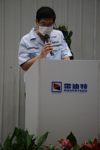 隨后,先進個人代表生產經理胡小勇分享了獲獎感言,他表示榮譽是雷迪特人一起相互補位、并肩奮斗的成果,并代表全體員工進行表態,繼續團結一致,踐行標準、取得公司與個人的雙贏!