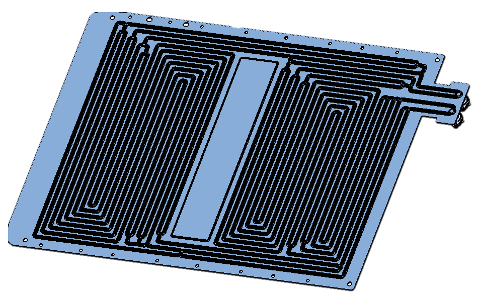 沖壓式直冷板,相比口琴管直冷板,結構更加簡單,不需要通過均溫板進行溫度平衡。通過流道設計,引導內部制冷劑的流動和相變,更高效的待著熱量。